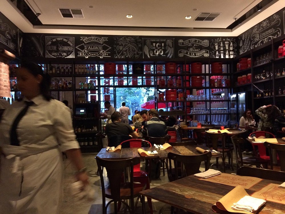 Ambiente clássico com toldo vermelho e charme parisiense, serve pratos franceses tradicionais com um toque brasileiro.